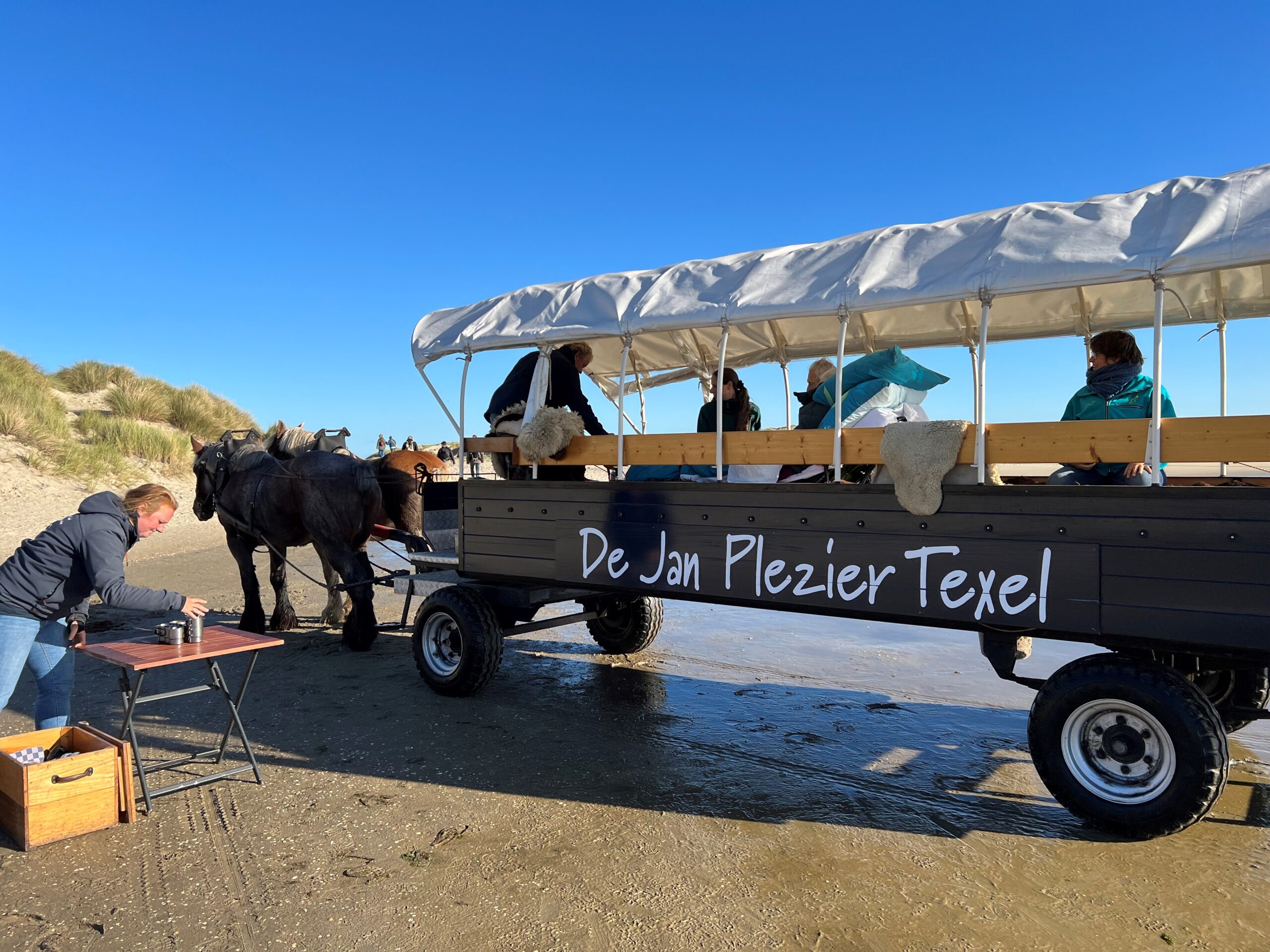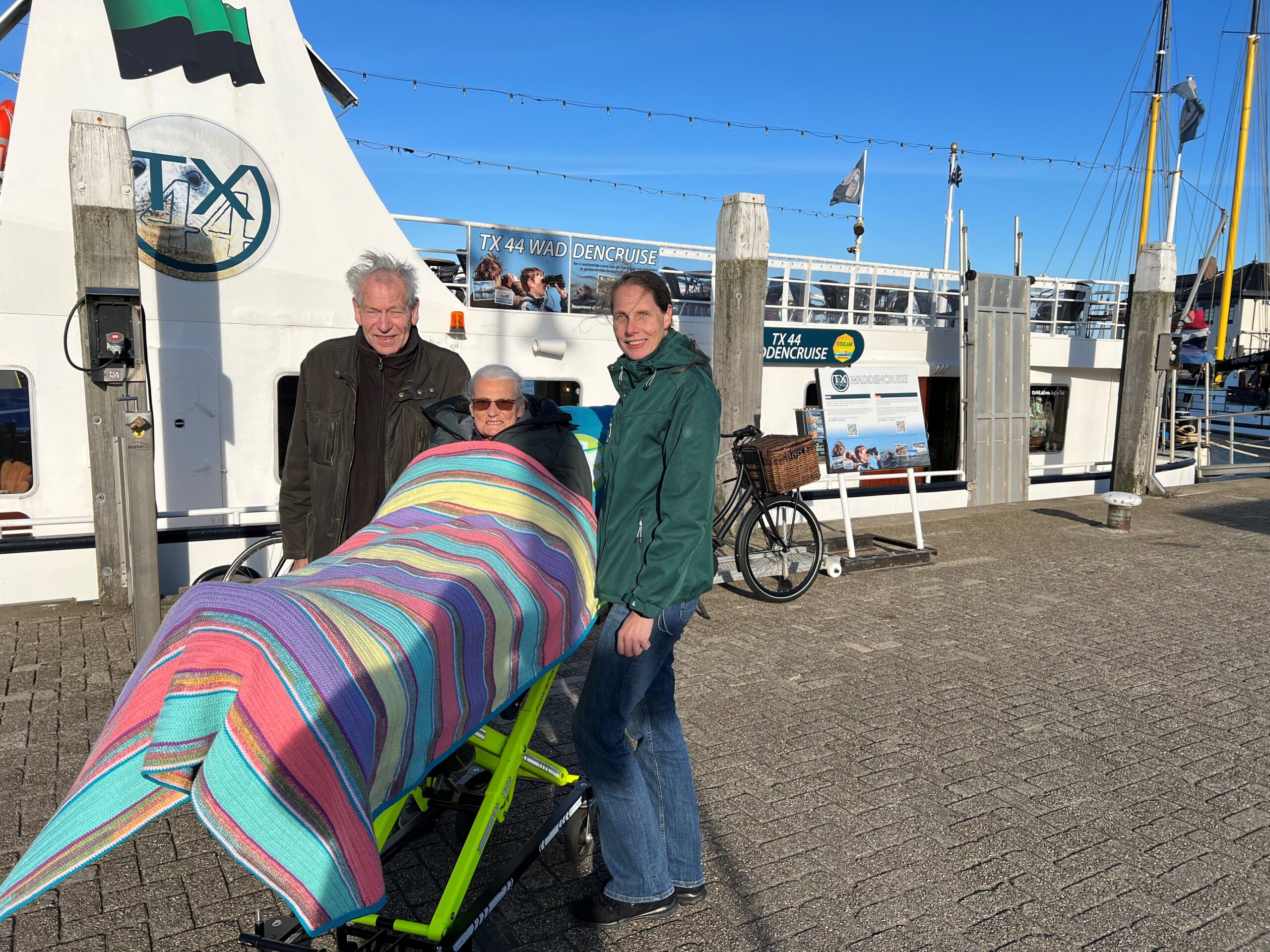 1 week na de wensaanvraag was het zover. ‘s Morgens om 5.30 stond de wens ambulance voor de deur, waarna de reis vanuit Coevorden naar Den Helder kon beginnen. De reis liep voorspoedig en waren op tijd voor de overtocht naar Texel. ’s Morgens zouden wij met De Jan Plezier Texel een huifkartocht maken door NP Duinen van Texel vanuit De Koog. Doordat wij wat aan de vroeg kan waren, heeft de chauffeur met verpleegkundige geregeld om eerst nog een kop koffie te drinken bij Van Der Valk in De Koog. Na de huifkartocht gingen wij naar Oudeschild voor een waddencruise incl. zeehonden spotten en rondvaart door marinehaven Den Helder met de TX44. Hier was het even kijken hoe mijn moeder aan boord kon, ze kon wel met de brancard op de boot maar er niet van af i.v.m. waterstand en ligging aan de kade. Maar ook hier zijn ze uitgekomen.