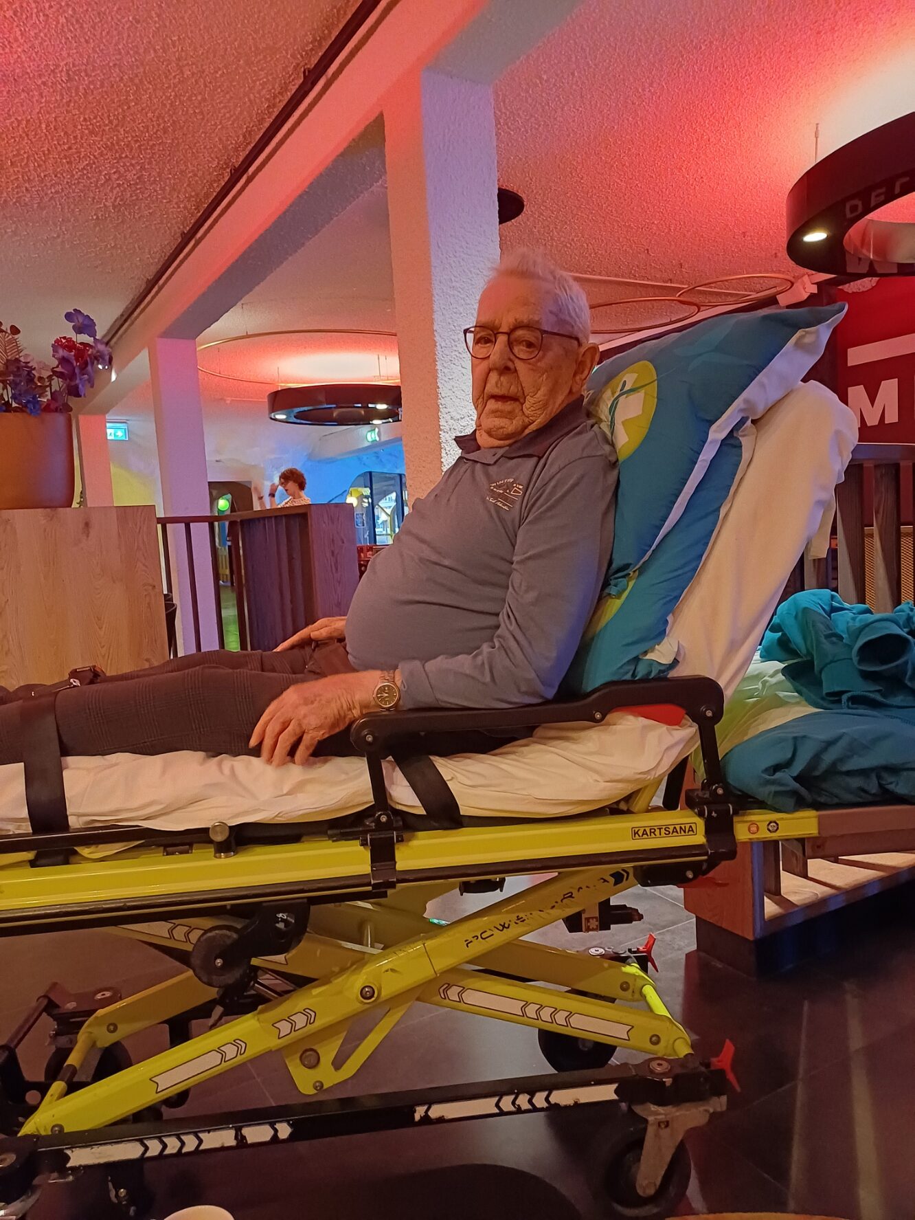 We hebben toen kennis gemaakt met de lieve chauffeur en verpleegkundige en hebben mijn vader toen op zijn gemak op de brancard gelegd en zijn toen naar beneden gegaan om te vertrekken naar Preston Palace in Almelo. Hij wou daar nog oude herinneringen ophalen van een aantal jaren geleden toen hij daar samen met zijn vrouw en kleinkind op vakantie gingen. en dat is goed gelukt wat heeft hij een fantastische dag gehad een dag met traan maar ook met lach. Naar een vermoeiende dag voor mijn vader waren we redelijk op tijd thuis zodat hij nog ff alle indrukken van die dag kon verwerken en iedereen het vertellen hoe geweldig die dag is geweest