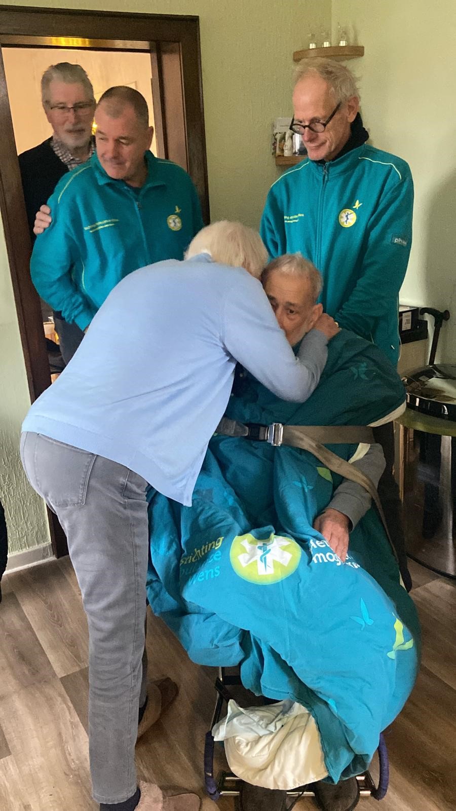 Om 8 uur ‘‘s ochtends kwamen Peter en Rinie aanrijden bij het hospice en vanaf toen was het alleen maar genieten. Onderweg een kopje koffie drinken of een broodje eten, het koste mijn vader geen energie want hij werd overal met de brancard heen gereden zodat hij zo uitgerust mogelijk bij zijn zus aankwam.