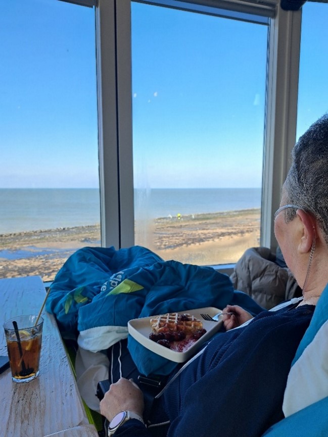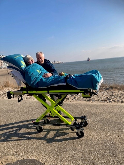 Om 10.00 uur stonden Jan en Jenny voor de deur. Het begin van een onvergetelijke dag. Eerst lekker wafels eten op de dijk in West Kapelle, daarna een heerlijke lunch op de boulevard in Vlissingen. Jan wist de ambulance zelfs naar ons plekje aan het einde van de boulevard te sturen, zodat wij hier samen heerlijk in het zonnetje hebben zitten dromen.