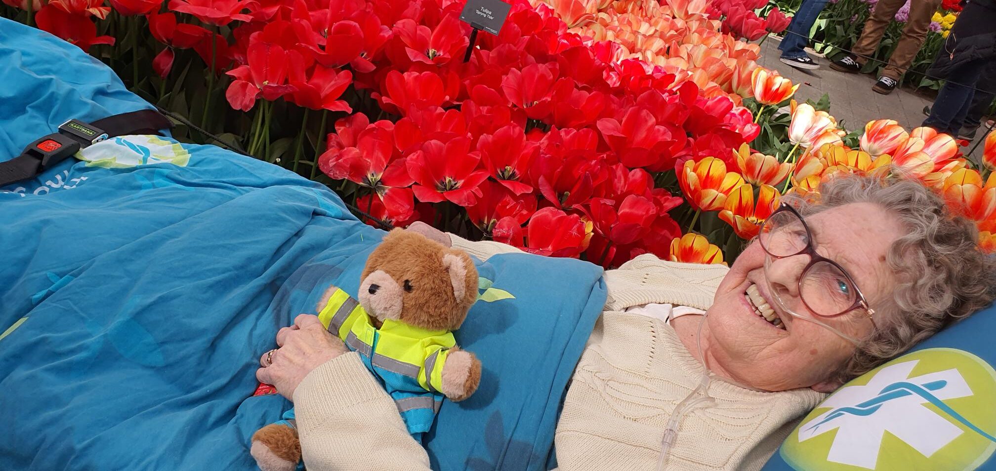 Bedankt voor de fijne dag die jullie hebben gegeven voor mijn zus in de Keukenhof Het was een geweldige dag waar we nog lang kunnen nagenieten dank zij jullie inzet en vrolijkheid. Mijn zus heeft alles in geuren en kleuren over deze dag aan de bewoners en het personeel verteld . Ook over de verrassing naar het strand van Katwijk aan Zee. Deze dag zullen we niet vergeten. Jullie mogen er zelf een foto bij zoeken. Ineke bedankt voor de mooie foto’s. Een hartelijke groet van