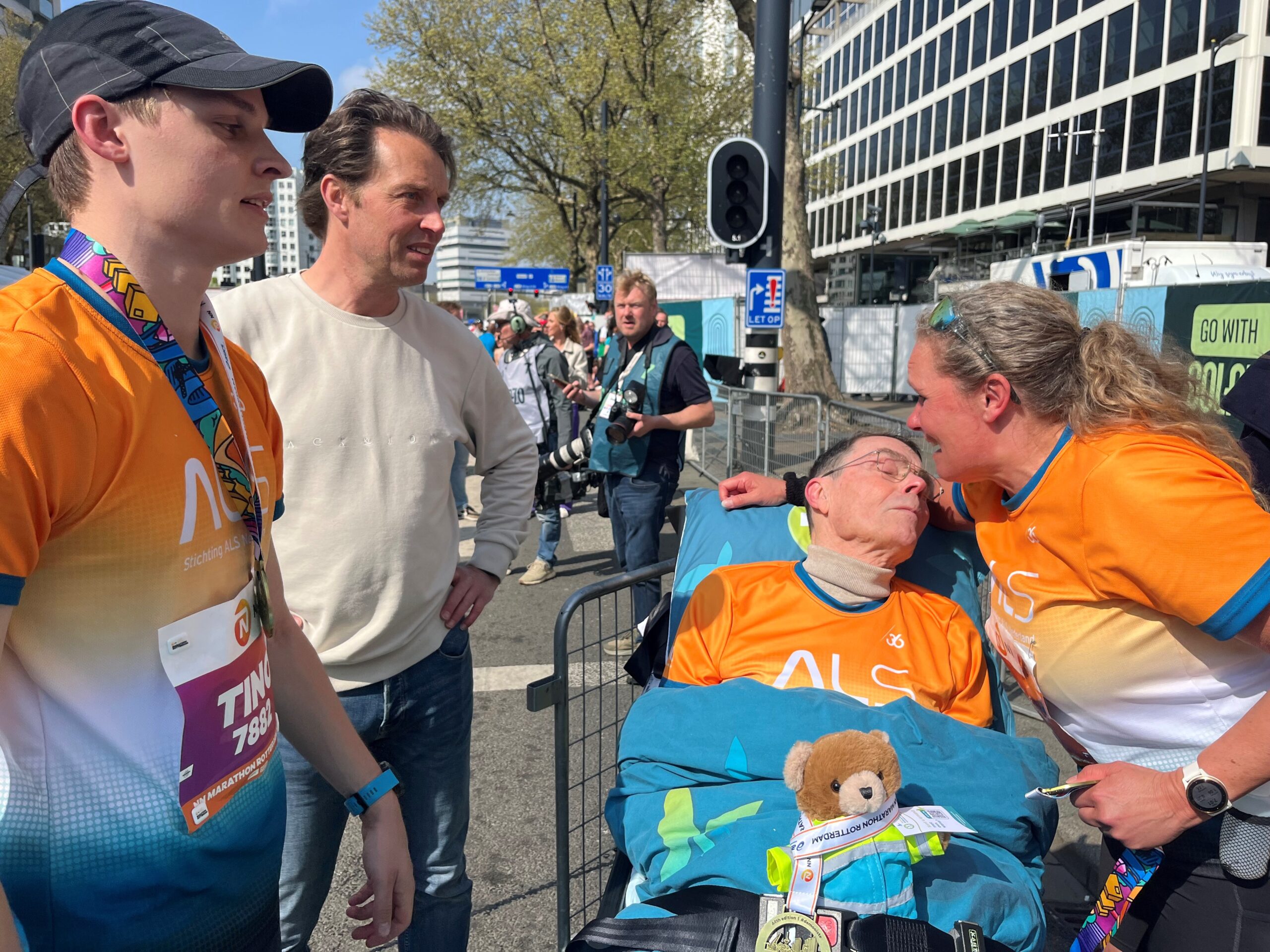 Als Tino over de finish komt, rent hij direct naar z’n zieke opa Leo: ‘Ik zet zijn traditie voort’ | Rotterdam | AD.nl