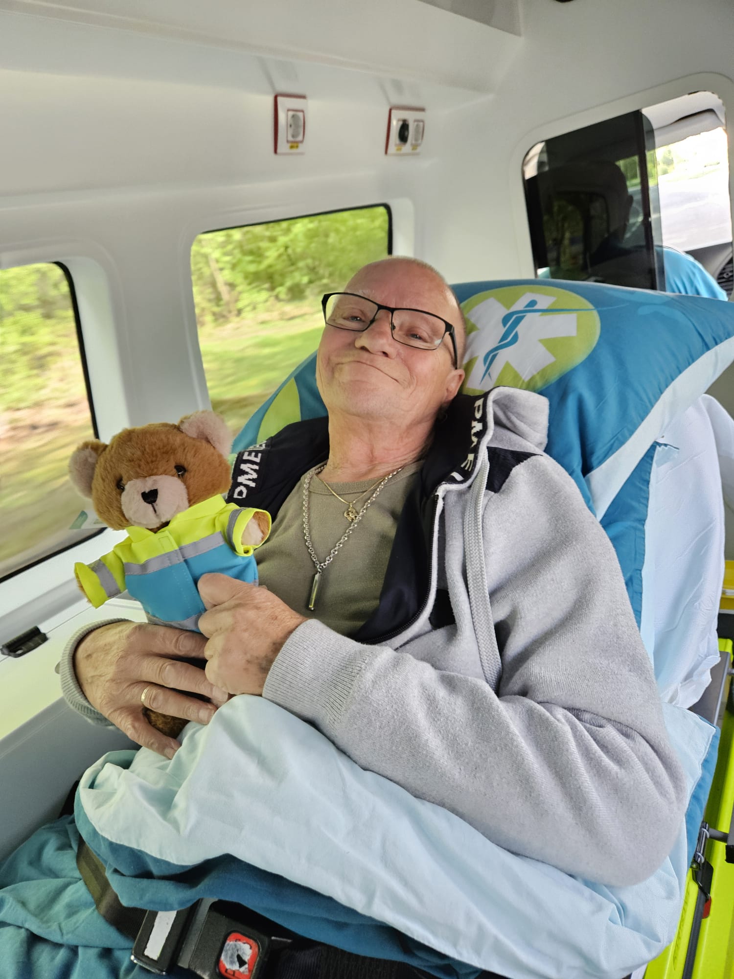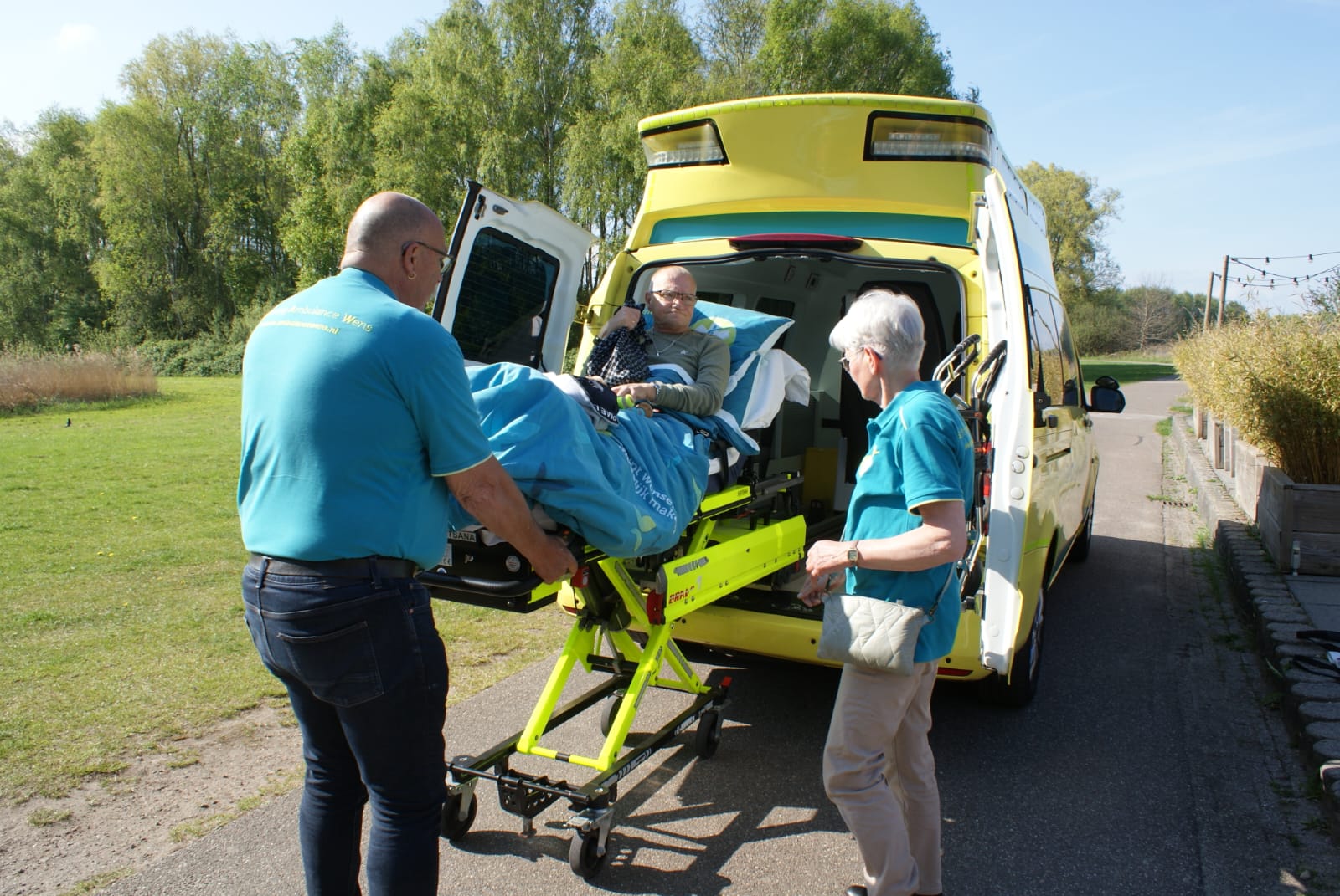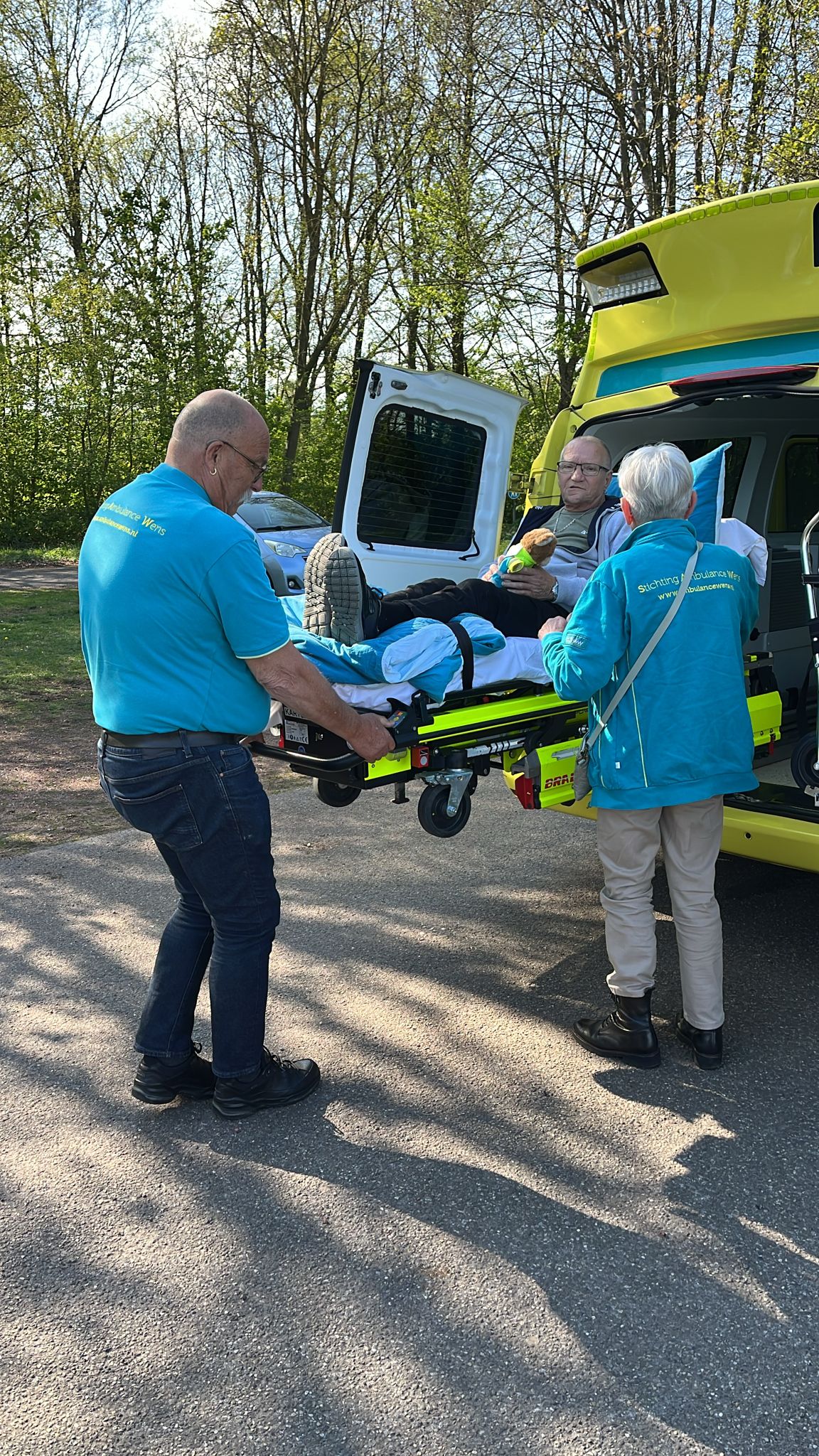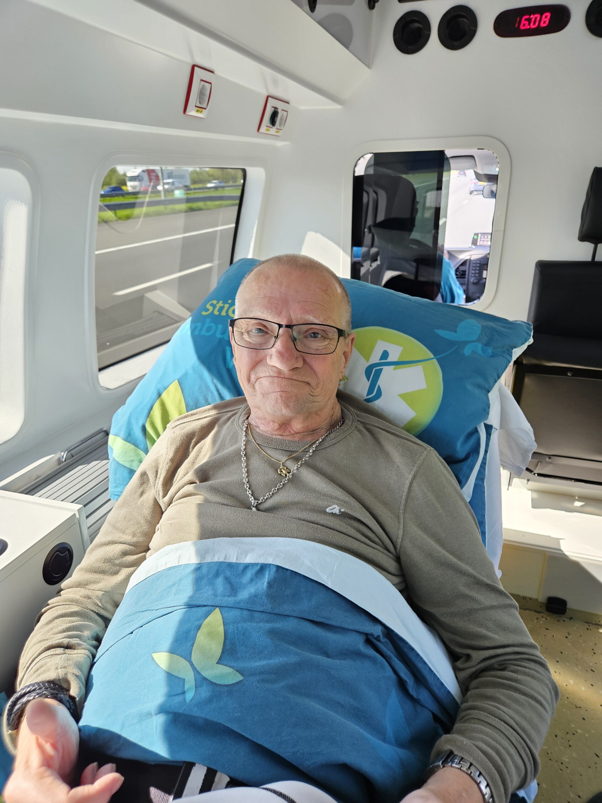 Op vrijdag 18 april kwamen 2 hele lieve vrijwilligers met de Stichting Ambulance Wens ze heten Frank en Jenny mij en mijn vrouw ophalen.