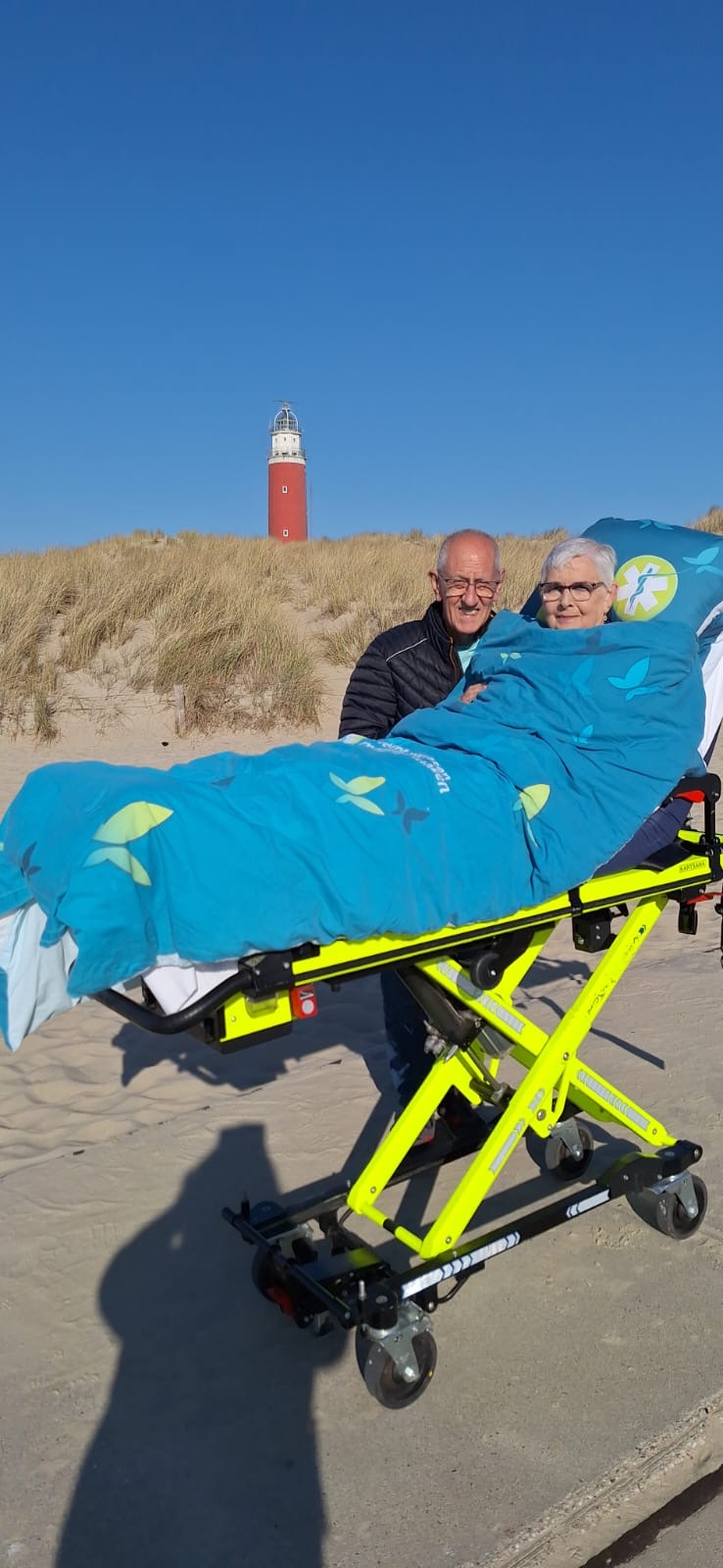van Texel, daar ging de brancard uit de ambulance en gingen we naar het strand heerlijk
