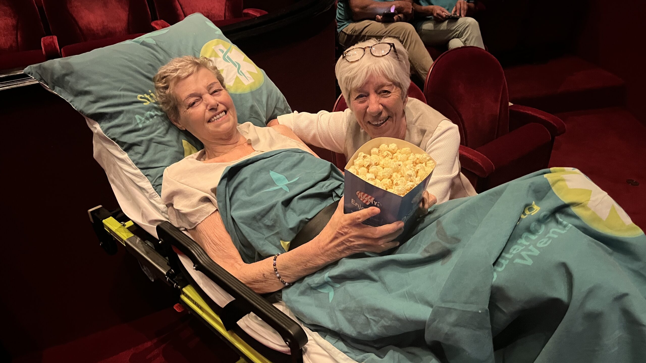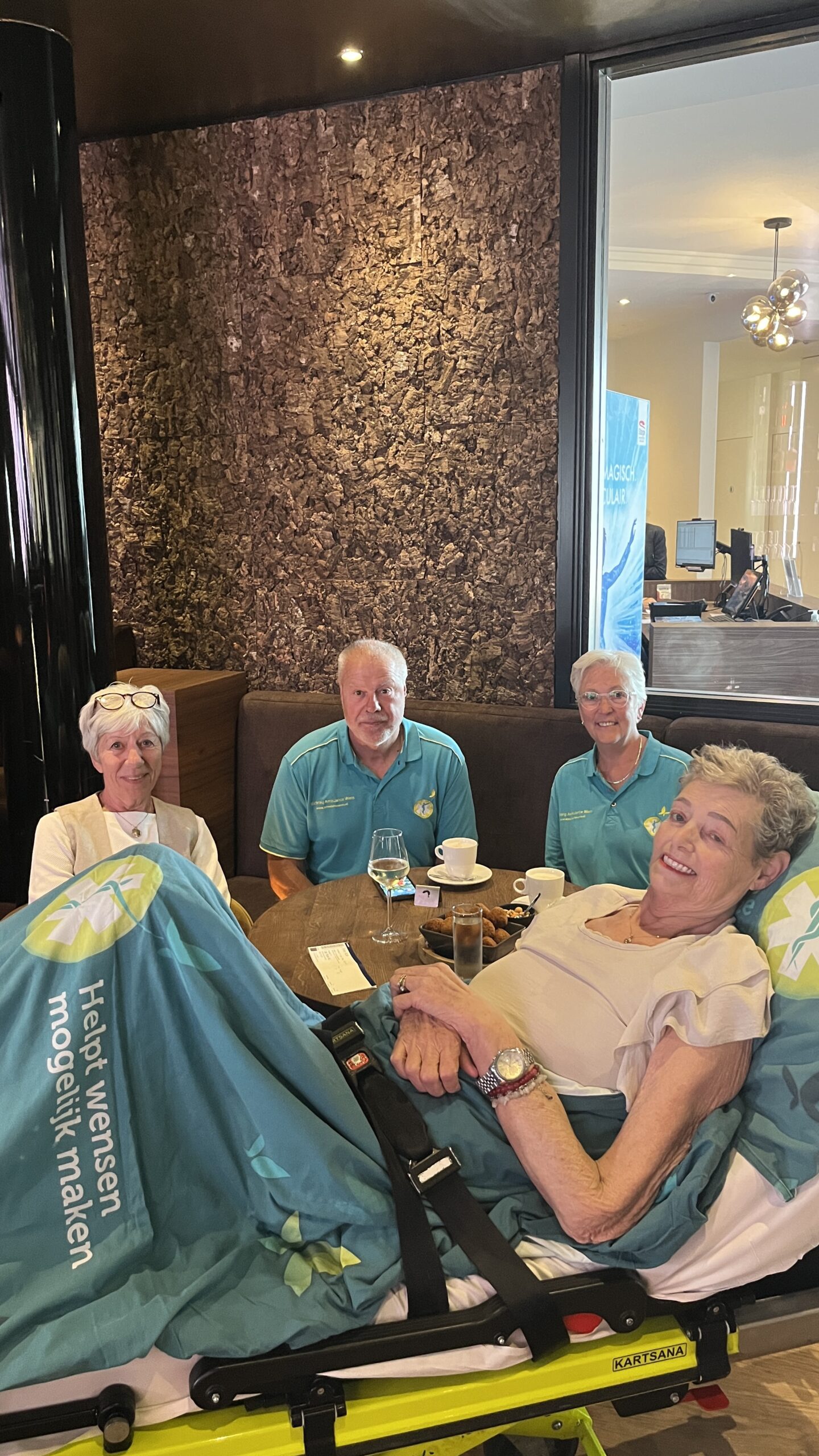 Ria kon liggend op de comfortabele brancard genieten van dit spektakel.