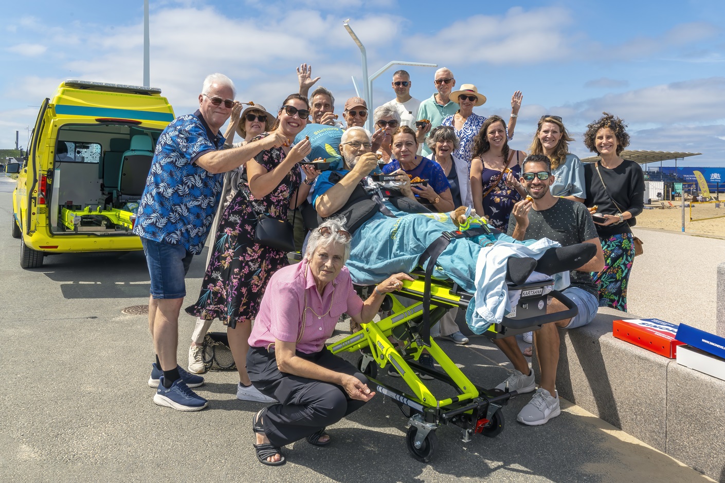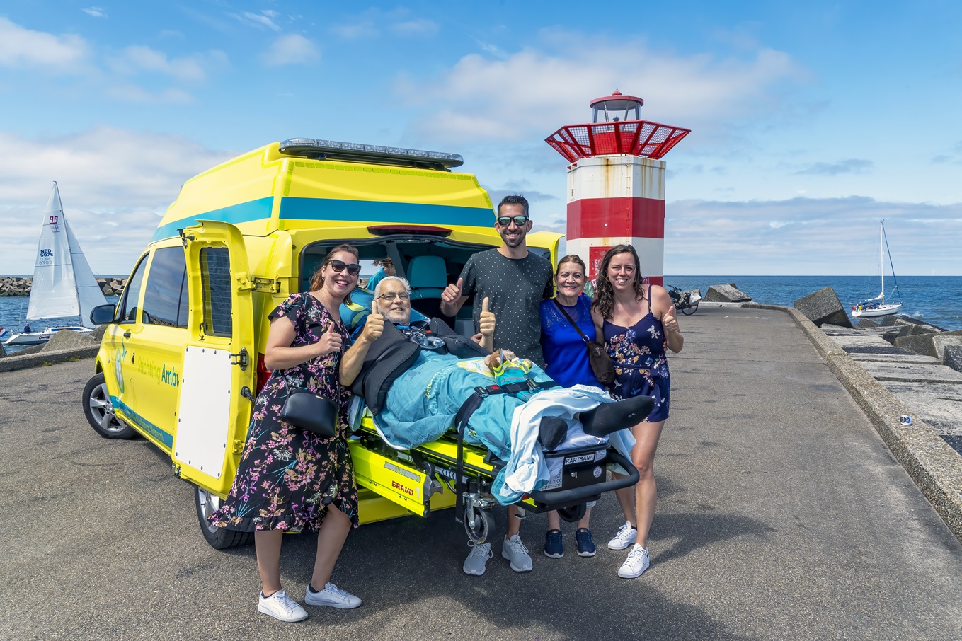 Op zaterdag 12 juli 2025 heb ik een fantastische dag mogen ervaren met de SAW. Twee zeer behulpzame, vriendelijke medewerkers, nl. verpleegkundige Winnie en chauffeur Frans hebben mij de hele dag naar plaatsen gebracht die op mijn wensenlijstje stonden. Onder andere naar de havenhoofden van Scheveningen, bij de vuurtoren, de beachvolleybalvelden, de boulevard en langs het Kurhaus. Onderweg heb ik met mijn familie om me heen een lekker visje van Simonis gegeten en verderop een ijsje van ijssalon Palazzo als toetje. Afrondend zijn we nog langs mijn ouderlijk huis gereden en weer terug naar Zoetermeer. Het was een heerlijk dagje erop uit met familie. Zie bijgaand filmpje en foto impressie. Ook mede dankzij Mario (een ambulance knuffelbeertje, ontvangen van Winnie en Frans) heb ik een onvergetelijke dag mogen ervaren.