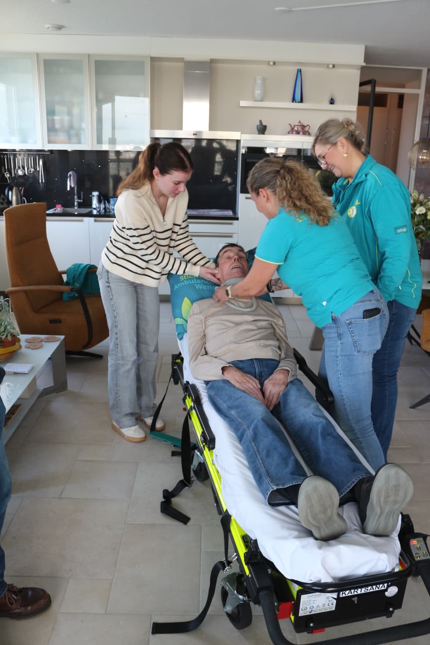Na 6 jaar geen wens meer gereden te hebben had ik vandaag weer een rit gepland staan. Dankzij jullie mocht ik mijn eigen vader naar het hospice brengen. Samen met de ontzettend lieve Brabantse verpleegkundige Patricia en mijn dochter Jade. Een kort maar dankbaar ritje. Het was weer even wennen met de brancard maar geveld door een zeer progressieve vorm van ALS kon mijn vader toch geen kant op en lag hij geduldig op de brancard terwijl wij aan het tobben waren. Zijn humor laat hem in tegenstelling tot zijn spieren zeker nog niet in de steek. De rit ging prima en de ontvangst in het hospice was warm en welkom. Ik vond het bijzonder om deze rit te mogen doen. Iedereen, Menno in het bijzonder, onwijs bedankt voor deze dag!