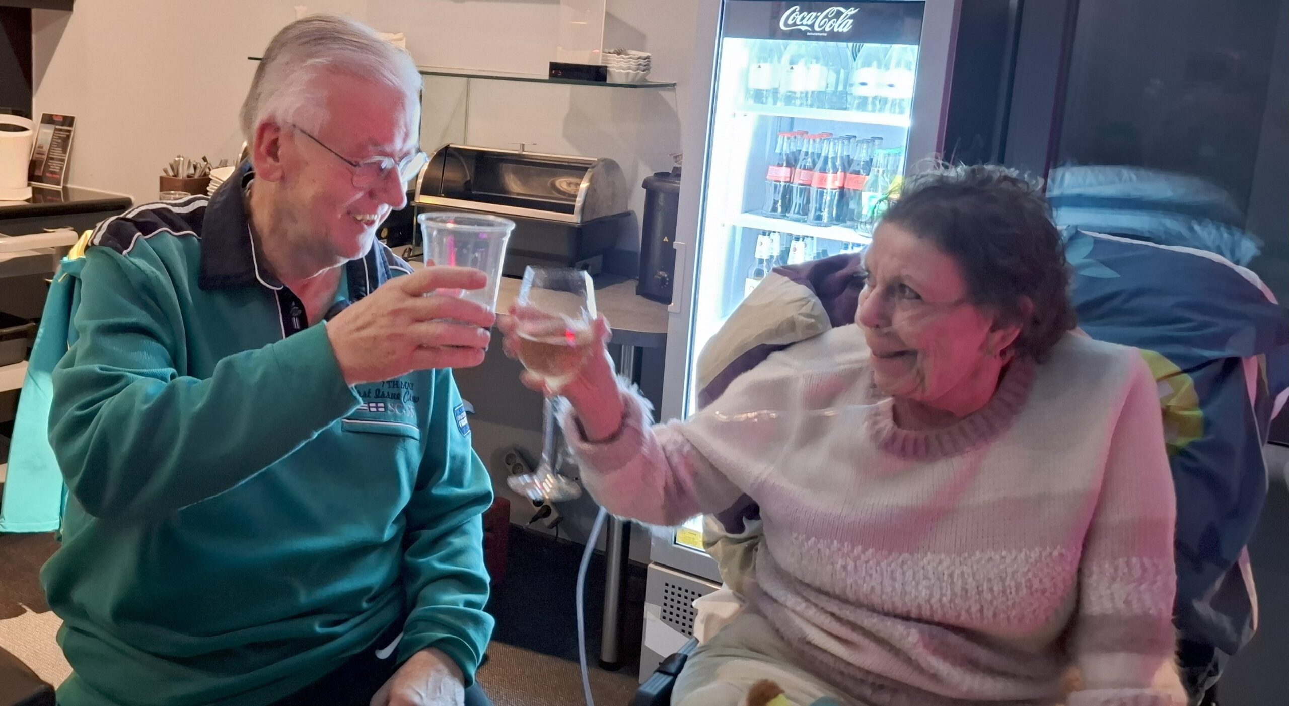 Het ontbrak ons werkelijk aan niets. Er stond een koelkast tot onze beschikking, gevuld met allerlei drankjes, en er werd ons ook heerlijk eten aangeboden. Tijdens het concert werden we zelfs verrast met ijsbonbons, wat het feest compleet maakte. De sfeer, de muziek, en de warmte van de mensen om ons heen maakten het tot een dag vol ontroering en dankbaarheid. Na afloop werden we door de verpleegkundige en de chauffeur met dezelfde zorg en aandacht weer veilig huiswaarts gebracht. Rond 23.40 uur waren we weer thuis, voldaan, ontroerd en diep dankbaar.