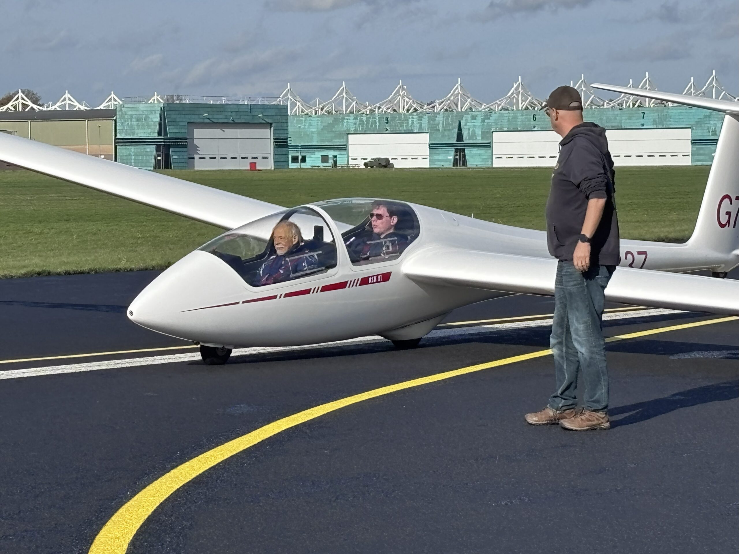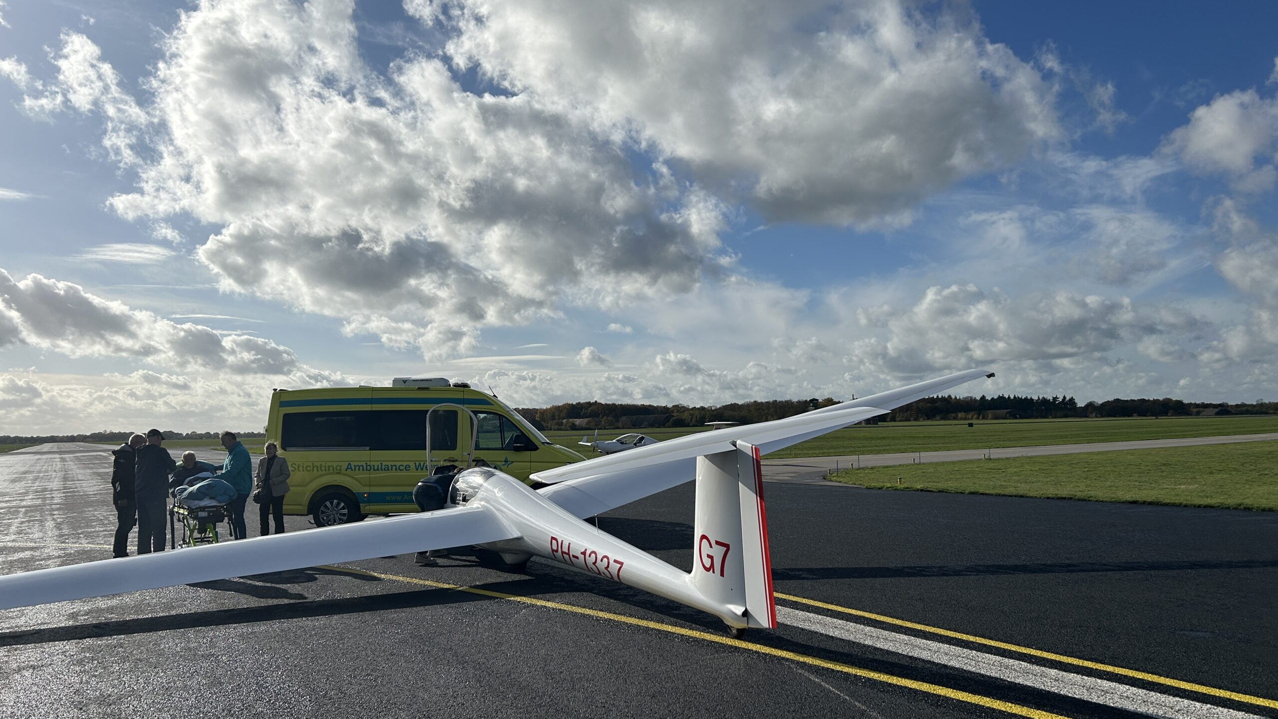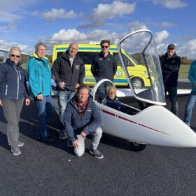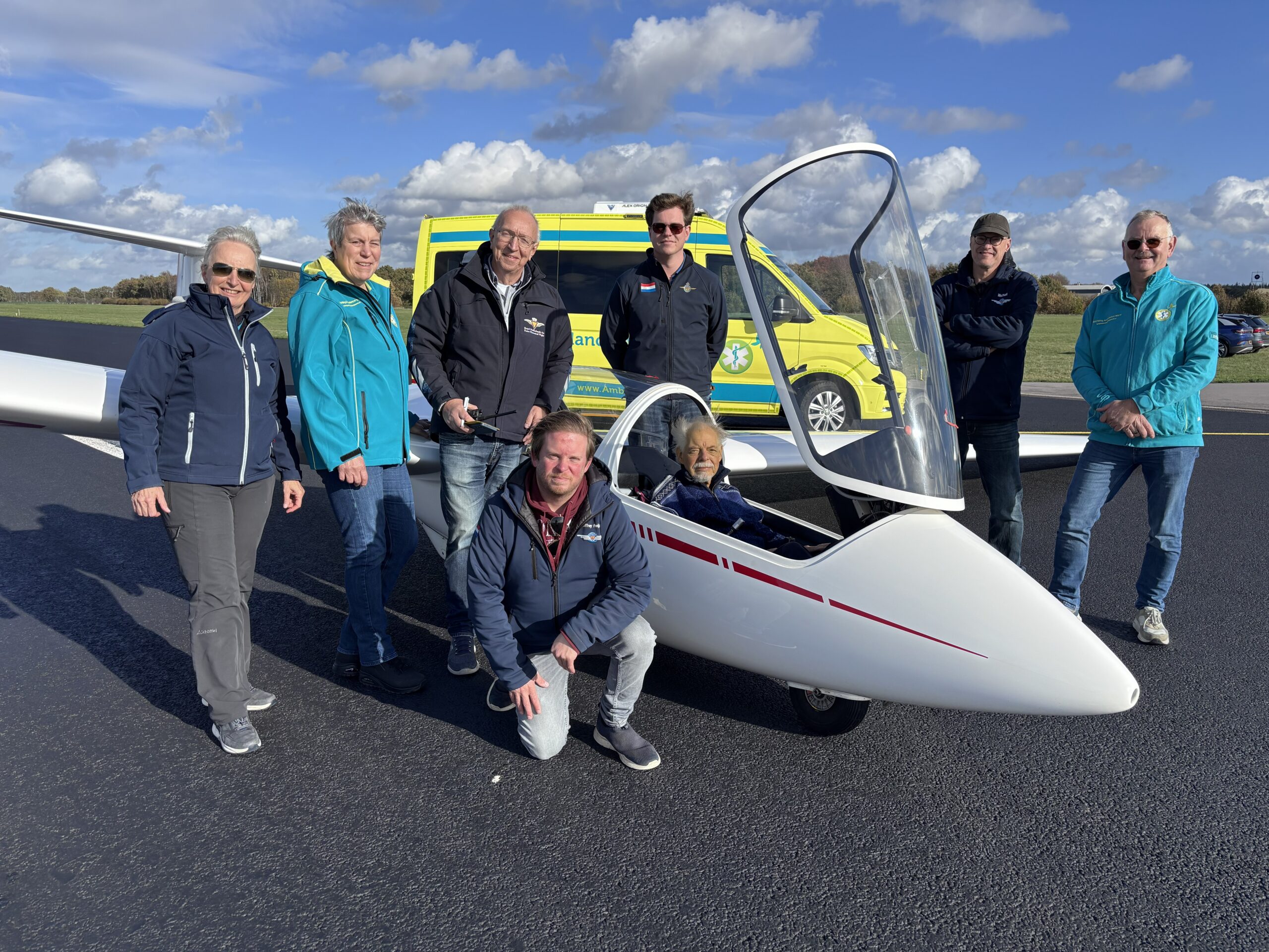 Wat een belevenis was het! Jullie kwamen mij ophalen bij het hospice in Dongen met de ambulance, begeleid door twee verpleegkundige begeleiders. Mijn schoonzus mocht samen met mij mee in de ambulance. Vervolgens gingen we naar het vliegveld in Gilze-Rijen, waar een zweefvliegvereniging is gevestigd. Daar werden we uiterst vriendelijk ontvangen door de leden van het zweefvliegteam.