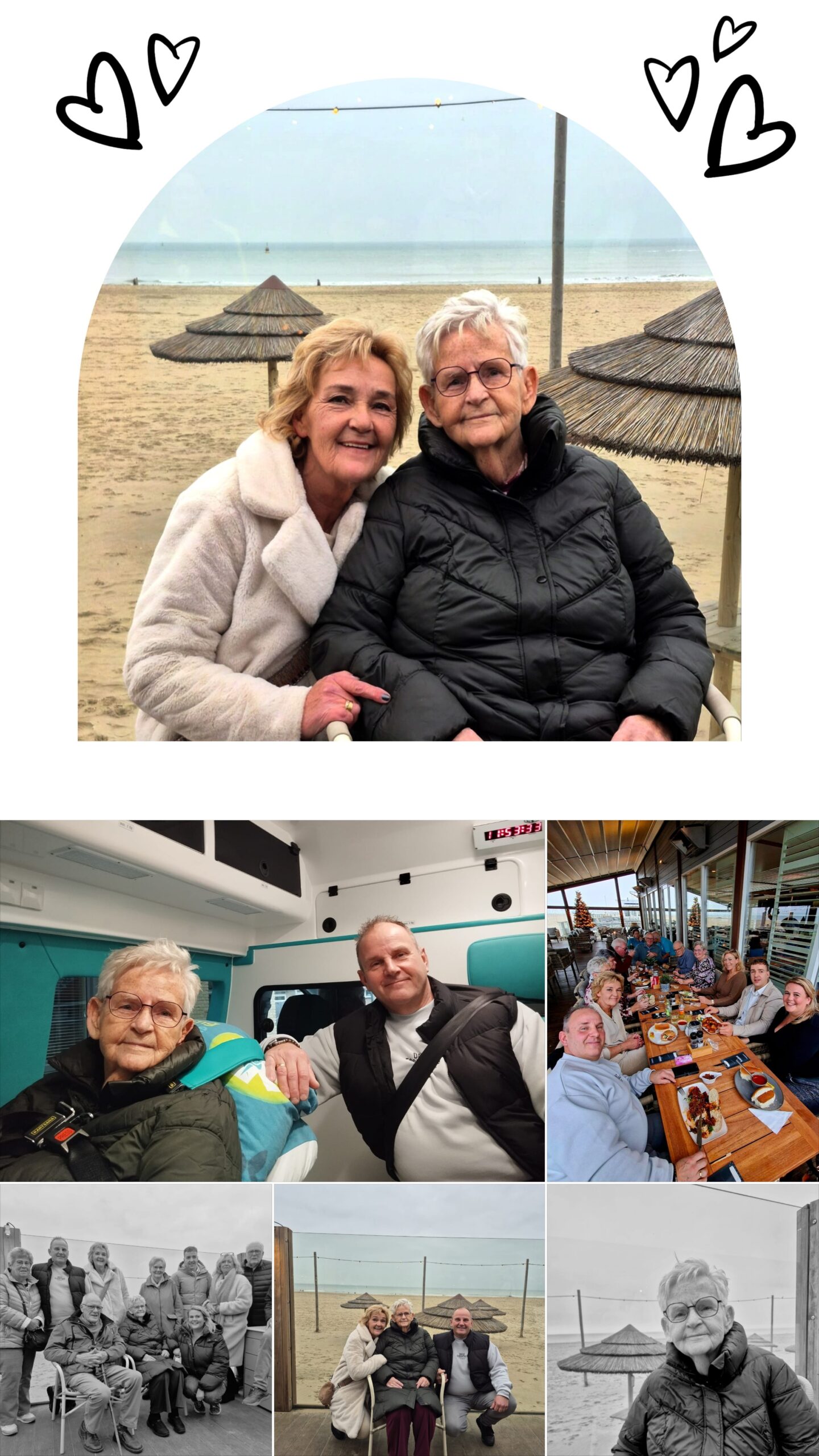 Vrijdagmorgen is mijn moeder Jopie Sonders opgehaald in de hospice in Spijkenisse. Door 2 hele lieve mensen van de Ambulance Wens. Eenmaal geïnstalleerd op weg naar Scheveningen. Daar aangekomen in restaurant de “Waterreus” werden wij warm en hartelijk ontvangen. Familie stond ons al op te wachten. En hebben daar heerlijk gegeten en gekletst. Afscheid genomen van de familie. Toen had mijn moeder nog de Wens om langs haar ouderlijk huis te gaan ook in Scheveningen. Daar waar ze opgegroeid was, nou en dat is gelukt. Wat was ze blij en tevreden en niks anders dan lof. Zo fijn om te zien. Daarna de rit terug naar de hospice met veel mooie momenten en heel veel herinneringen. Wij als dochter en schoonzoon zijn jullie ook zeer dankbaar dat dit voor haar zo mooi gedaan is. Nogmaals heel erg bedankt. Jolanda en Fred Veeloo