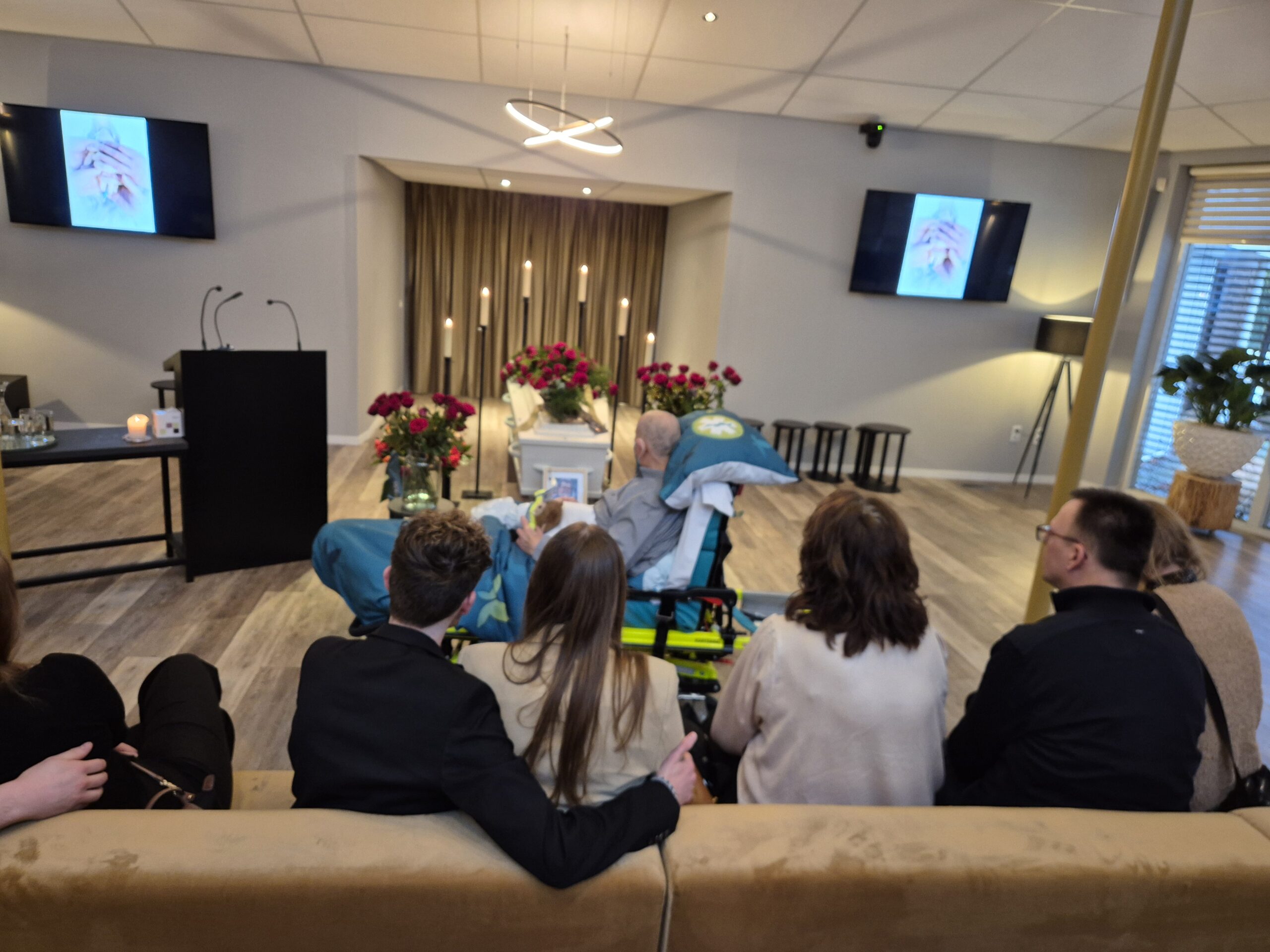 En dan… dan is daar de Stichting Ambulance Wens, die ervoor heeft gezorgd dat onze vader afscheid kon nemen van zijn vrouw, met wie hij 55 jaar getrouwd is geweest. Voor ons als gezin was het enorm belangrijk om dit samen te kunnen doen. Door de liefdevolle en professionele zorg van de mensen van de Stichting Ambulance Wens is dit een bijzonder, waardevol en onvergetelijk afscheid geworden.