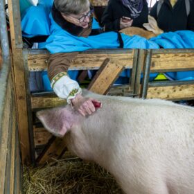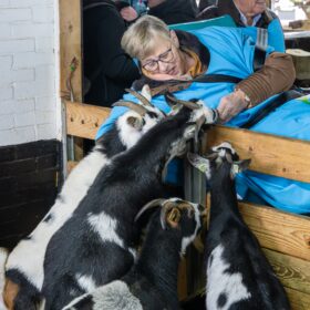 Daar werden we onthaald door aardige medewerkers, een vriendelijke fotograaf die via Ambulance Wens was geregeld, en onze familie. Met vereende krachten werd de brancard door de sneeuw naar de stal gereden, waar diverse dieren op mij wachtten. Ik heb daar heerlijk kunnen kroelen en kriebelen. Zo borstelde ik de snoet van een groot varken, terwijl ik een grote Vlaamse reus op schoot had. Daarna knuffelde ik met een cavia en legde een pony zijn hoofd zachtjes op mijn benen om geaaid te worden.