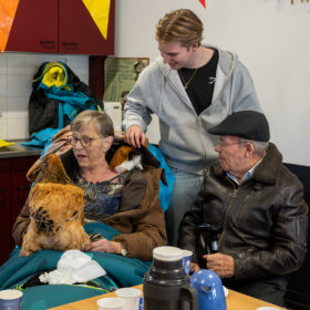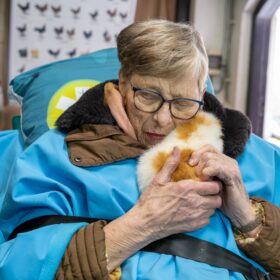 De vrijwilligers van de ambulance waren ontzettend betrokken en zorgden met hun warme inzet voor een fijne en gezellige sfeer. Vervolgens werden mijn familie en ik goed verzorgd met diverse drankjes en heerlijke broodjes, eveneens geregeld door Ambulance Wens. Tijdens dit eet- en drinkmoment werd ik verrast met een grote kip op schoot, samen met een cavia in mijn nek om mee te kroelen.