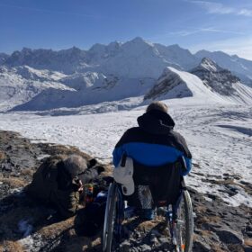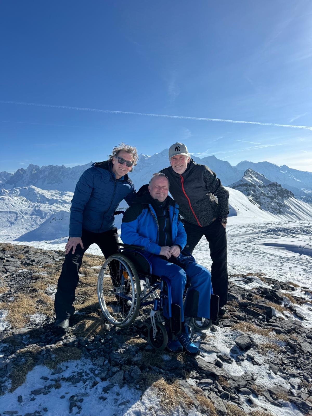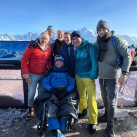 Met de Stichting Ambulance Wens kon dit verlangen worden vervuld. Samen met de vrijwilligers Jan en Erik hebben we een volle dag in Flaine doorgebracht, waar we Paul met zijn rolstoel vanaf de piste een flink eind richting een rotsplateau hebben kunnen dragen.