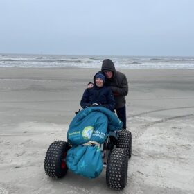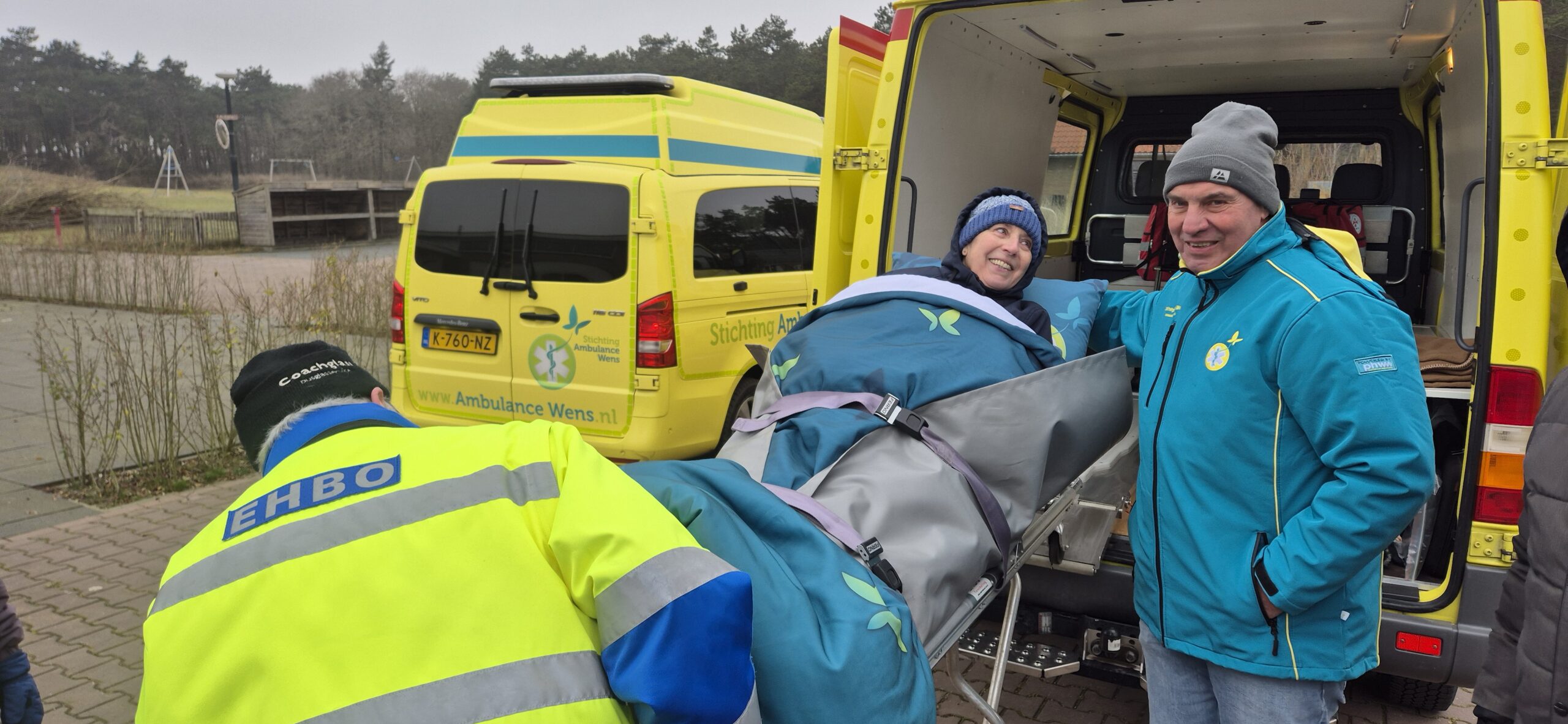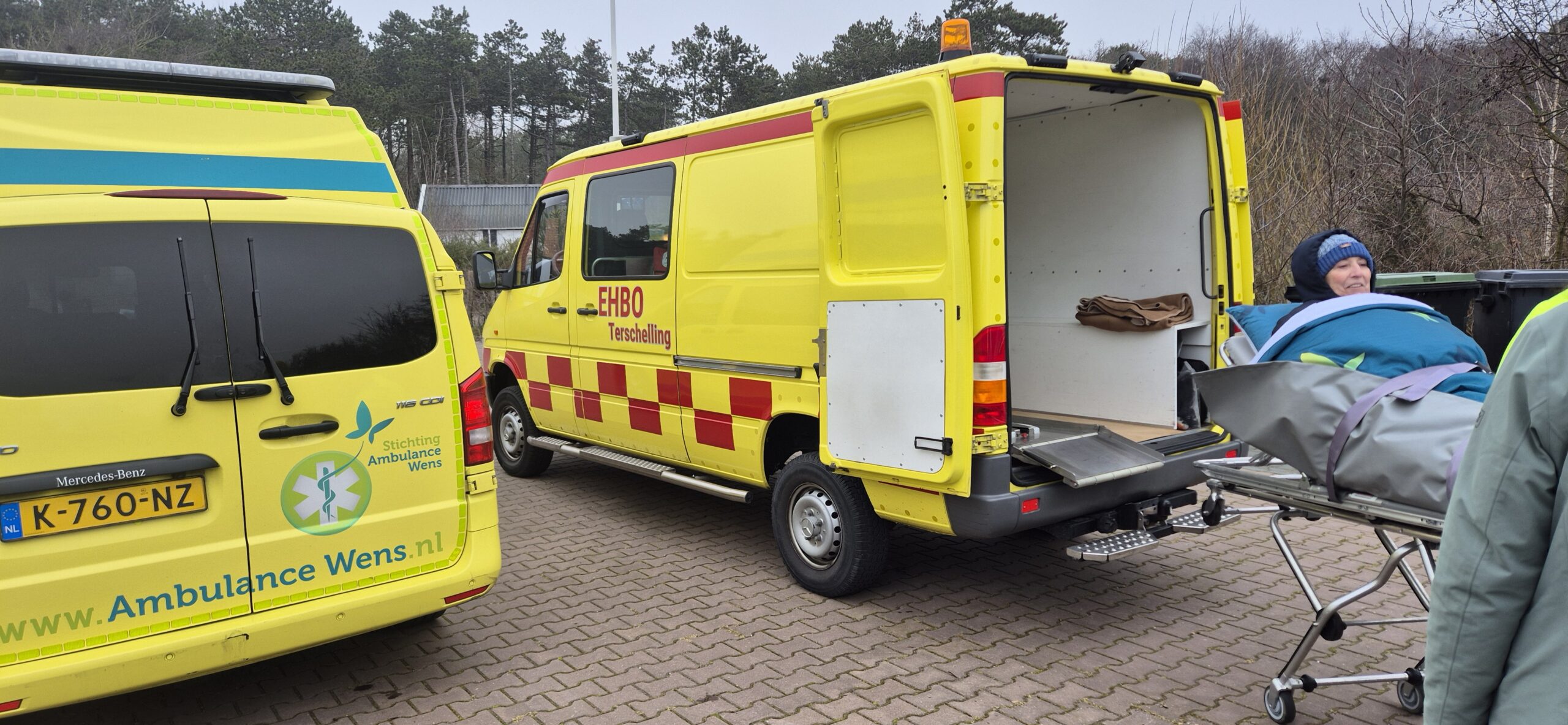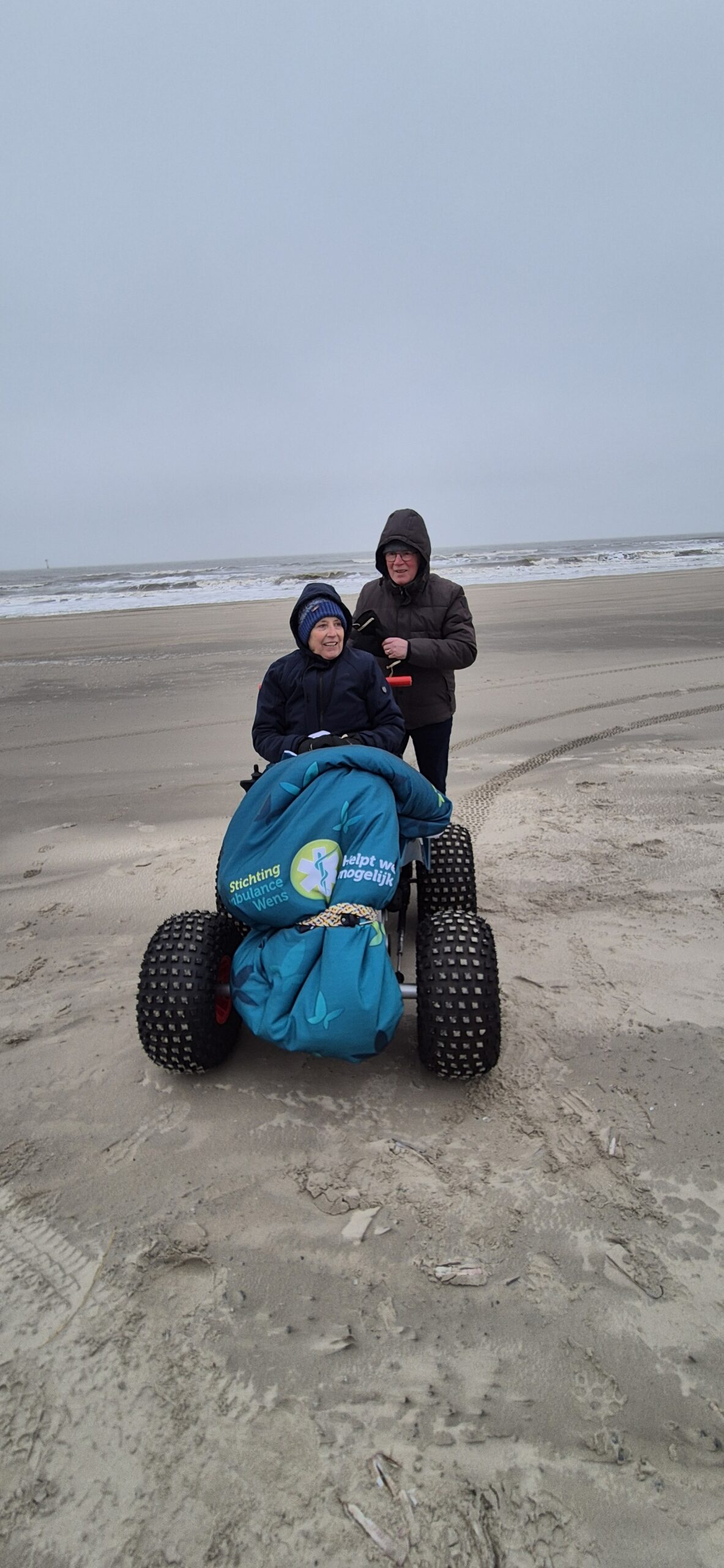 Onze jongste dochter vertelde ons over de Stichting Ambulance Wens en vroeg hoe we het zouden vinden als we onze hartenwens “nog één keer naar Terschelling” aan hen zouden voorleggen. Het leek ons een fantastisch idee. Jelma nam contact op en het balletje ging rollen. Er kwam meer informatie, we werden steeds enthousiaster. De datum werd wat naar voren gehaald zodat ik er ook echt van zou kunnen genieten. En afgelopen weekend was het zover. Alle kinderen, schoon- en kleinkinderen zouden gelijktijdig in hetzelfde hotel aanwezig zijn. Zo fantastisch om dit met het hele gezin te gaan ervaren. Zaterdag om 11.30 uur arriveerden onze geweldige vrijwilligers, Erik en Jan, wat een lieverds, warm, zorgzaam, invoelend en duidelijk. Eerst even kennismaken, koffiedrinken. De schattige mascotte van de Stichting werd door de mannen overhandigd. Toen was het tijd om richting Harlingen te vertrekken. Een mooie rit die vlot verliep, luxe en comfortabel om zo liggend vervoerd te worden. Op de boot troffen we twee van de drie gezinnen. Het gezin uit Denemarken van onze zoon en schoondochter was een dag eerder op het eiland aangekomen. We zaten gezellig met z’n allen in de salon wat te drinken en bij te praten. Nog even rusten in een andere ruimte en toen kwamen we op Terschelling aan, onze droomplek, “the place to be”. We reden van de boot af en direct kwam de Brandaris in zicht, ik schoot in de emotie, tranen met tuiten nu we echt hier waren. Het hotel lag aan één van de mooiste baaien van het eiland. Achter onze ambu stopte een meneer die even met de vrijwilligers en Klaas wilde praten. Het bleek een Terschellinger EHBO’er te zijn die over een ambulance beschikte die over het strand mocht en kon rijden. Hij bood aan morgen een strandrit met ons te maken. Wat een geweldig aanbod, hetgeen graag werd geaccepteerd. De hotelkamer had zeezicht, geweldig. Een vriendin had gezorgd voor flessenpost op de slaapkamer, ook dit was weer zo’n ontroerend moment. Lekker uitgerust tot we gingen eten met elkaar. Het eten was prima. Daarna weer even rusten en toen gingen we bowlen onder in het hotel. Ik heb twee pogingen gedaan, toen was de koek op. Het was genieten om te zien dat iedereen het naar de zin had. Wat een feest zeg! Na een uurtje nam ik afscheid en gingen de anderen nog even door. De volgende ochtend was iedereen tot mijn grote verbazing op tijd beneden bij het ontbijtbuffet. Ongelooflijk zoals de kleinkinderen genoten en aten van alles wat er was, er was geen nee te koop. Dat ze niet misselijk werden mag een wonder heten:}. Na even gerust te hebben gingen we naar Camping Nieuwe Formerum, waar we sinds jaar en dag staan, de laatste jaren in voor- en na seizoen en met de kinderen altijd in de zomervakantie. Jannet en Bastiaan de campingbeheerders kwamen naar buiten en het was een ontroerend weerzien met hen. Zij hadden de Terschellinger pondkoek en koffie en thee voor de ons meegebracht. We gingen daarna met elkaar over de camping en ieder deelde wat herinneringen en allemaal vonden ze de camping zoveel kleiner lijken dan in hun jeugd. Daarna arriveerde de EHBO ambulance en gingen we bij Formerum het strand op, wat een belevenis. Bij de zee aangekomen werden de achterdeuren opengedaan, zodat we ook direct naar buiten konden kijken, we roken en hoorden de zee, alle zintuigen stonden open, zo’n intense, tranentrekkende ervaring, zo mooi en kostbaar. We gingen tot heartbreakhotel, stonden even stil om er nog een goeie laatste blik op te werpen en toen weer terug naar Kaap Hoorn. Onderweg zagen we nog een huiler, we hoopten dat hij lag te rusten en niet verdwaald was. Bij Kaap Hoorn stond een elektrische rolstoel klaar. Wat een feest om daarmee naar de vloedlijn te rijden. In het begin was het behoorlijk wennen, ik schoot alle kanten op behalve de goede, maar op enig moment lukte het toch er wat sturing over te krijgen. Echt lachen om daarmee over het strand te rijden, geweldig, dikke pret! De magen begonnen te rammelen, dus de hoogste tijd om te gaan lunchen, gezellig met z’n allen heerlijk gegeten en wat gedronken, gekletst, quality time. Het was tijd om te rusten voor mij en de kinderen gingen nog gezellig West even in met elkaar. Om half zes voeren we met de boot weer naar Harlingen, aan boord aten we nog wat en toen was het afscheid nemen van elkaar. Met Erik en Jan gingen we door naar Heerde waar ze bij aankomst nog wat dronken en napraten over een geweldig weekend. Het is nu een dag later en het gevoel van euforie blijft, wat een groot cadeau is dit, een droomwens is vervuld, hoe kostbaar en onbetaalbaar.