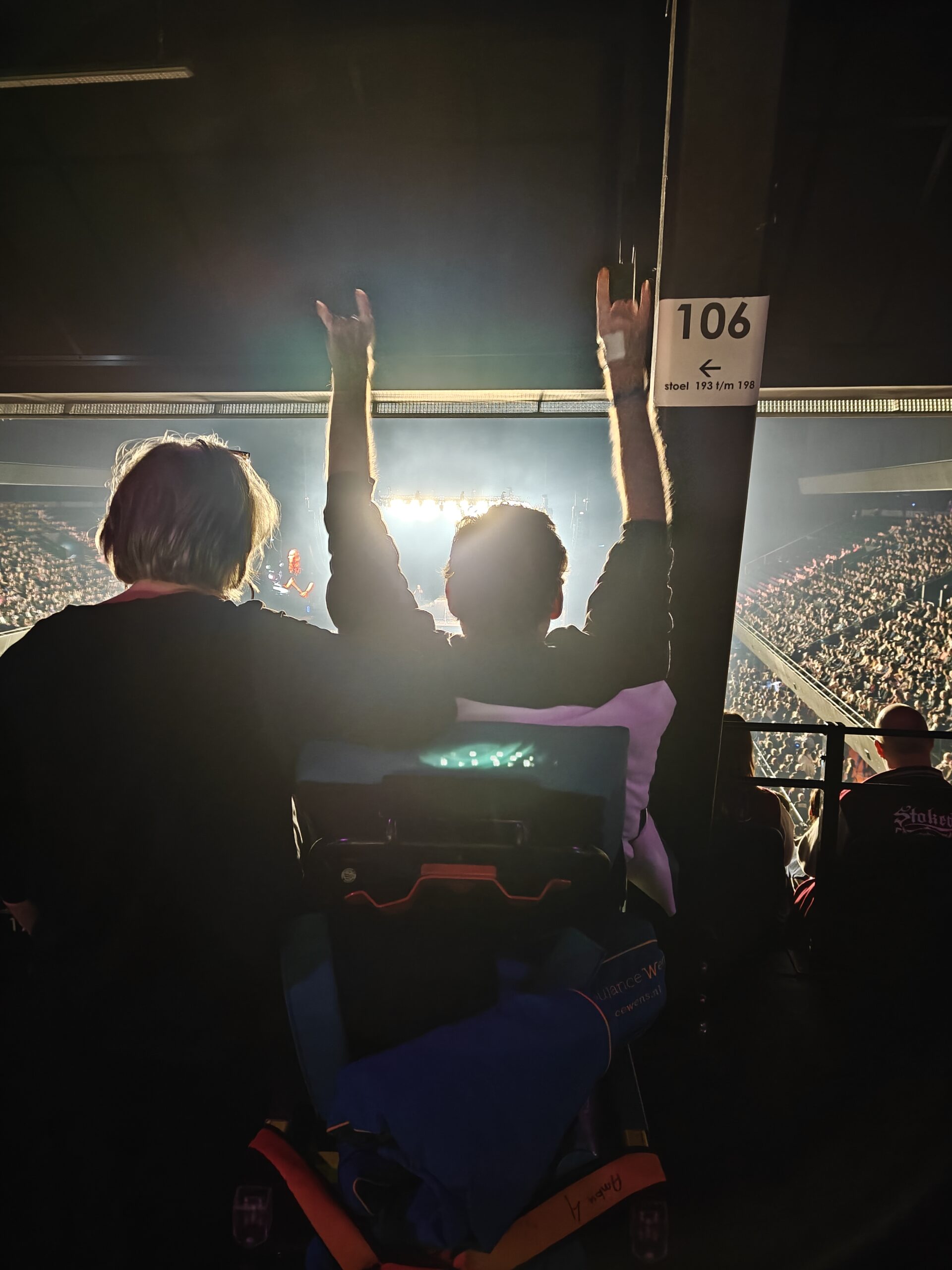 De Ziggo Dome had geregeld dat ik helemaal bovenin de Golden Business Club stond, midden voor het podium. Ik had een perfect overzicht. Voor de Golden Business Club worden normaal geen kaartjes verkocht, deze is alleen voor partners van de Ziggo Dome. En we konden onbeperkt drinken wat we wilden.