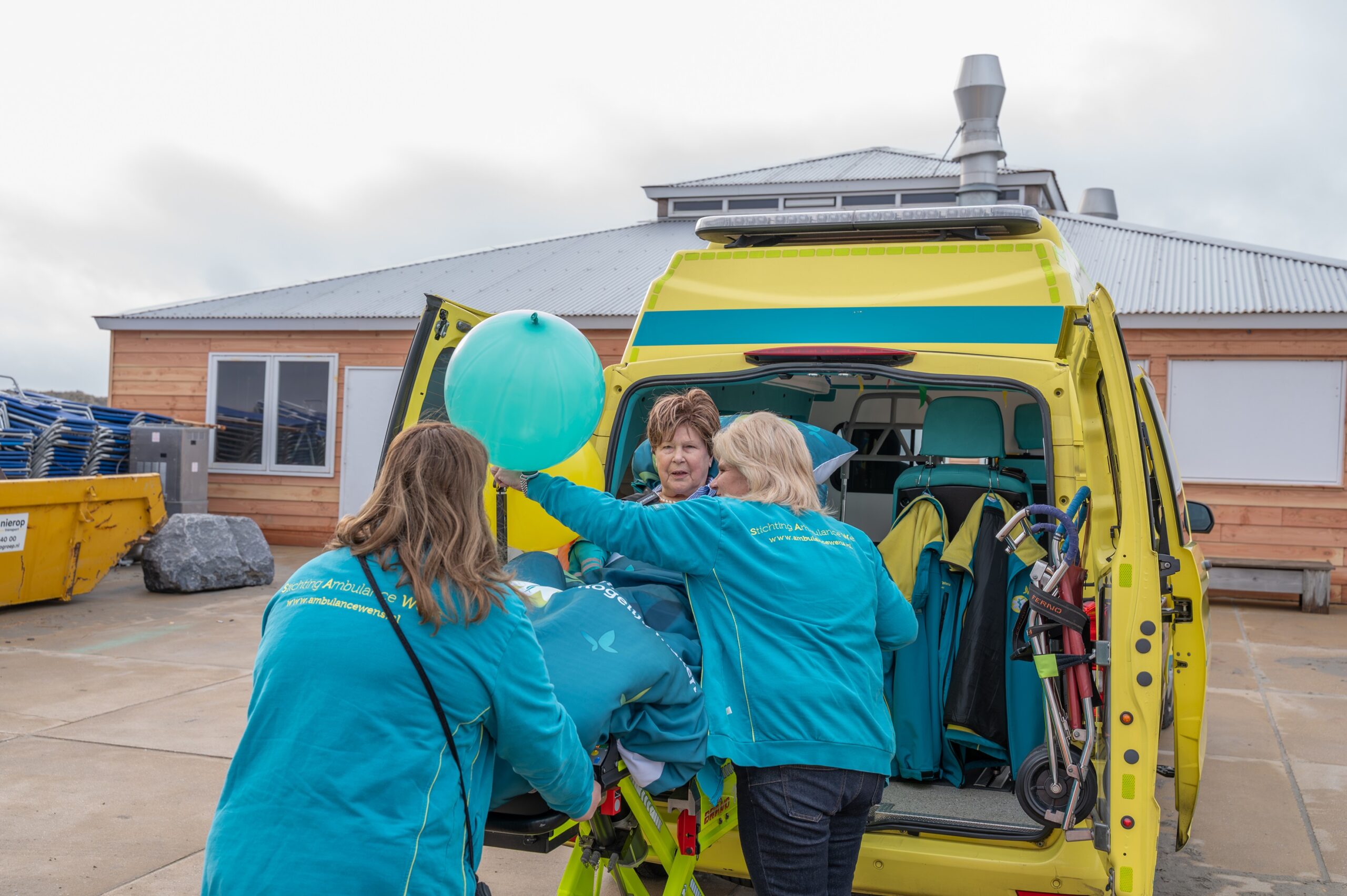 En of het allemaal nog niet genoeg is, vragen de vrijwilligers of ze misschien nog langs huis zou willen. Oh, wat zou ze dat leuk vinden. We zeggen niks tegen mijn moeder. Mijn broertje en zijn zoontje gaan mee in de ambulance. Als we bijna thuis zijn, ziet ze waar we heen gaan. De buurvrouw is ondertussen geïnformeerd en staat haar ook op te wachten.