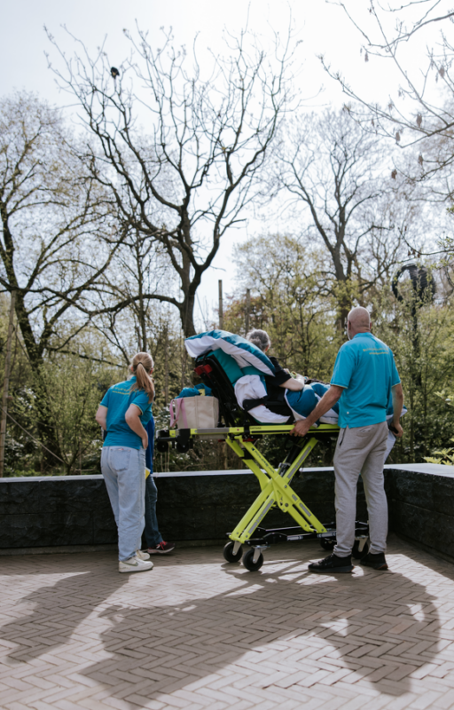 Wij (mijn partner en ik ) werden verrast door de ambulance chauffeur en de verpleegkundige met de leuke mascotte Mario.