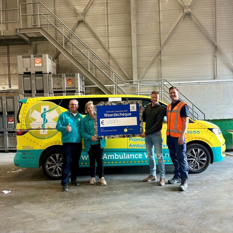 Onze vrijwilligers Hans en Ineke mochten een prachtige donatie van maar liefst €5000,- in ontvangst nemen! REISSWOLF Nederland organiseert jaarlijks de Nationale Snipperdag. Op deze dag kunnen bedrijven en particulieren gratis hun vertrouwelijke documenten aanleveren voor veilige vernietiging. Dit jaar heeft REISSWOLF besloten 100% van de opbrengst en donaties te schenken aan Stichting Ambulance Wens….